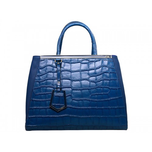 Fendi 2jours Tragetasche aus Kalbsleder, Krokodilblau
