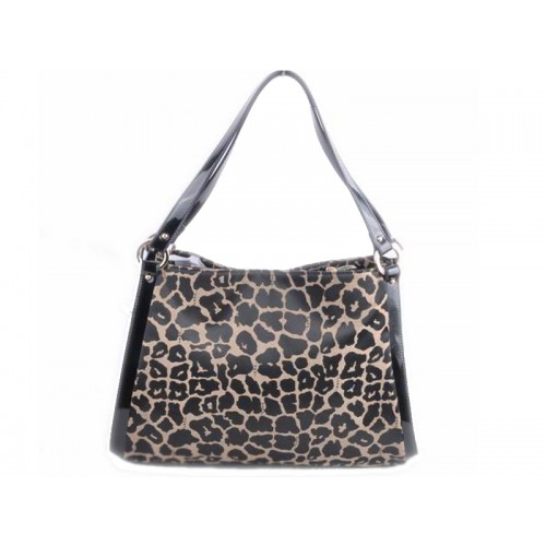 -Leopardenstoff mit Lederbesatz und „Fendi“-Medaillon, das am Riemen hängt