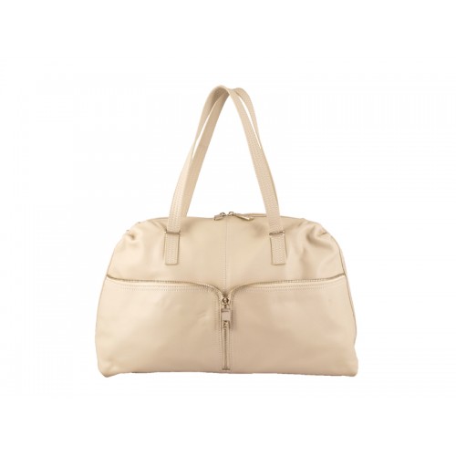 Fendi Henkeltasche aus Rindsleder mit Frontreißverschluss, Off-White