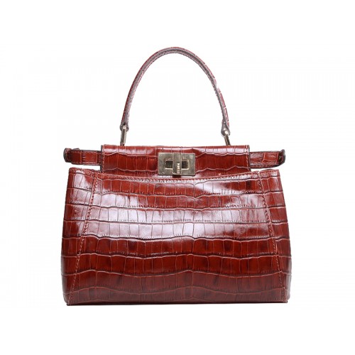 Fendi Iconic Mini Peekaboo Tasche aus burgunderrotem Krokodilleder
