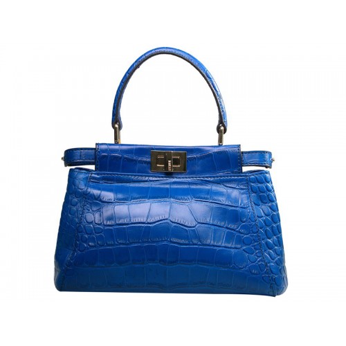 Fendi Iconic Mini Peekaboo Tasche aus hellblauem Krokodilleder