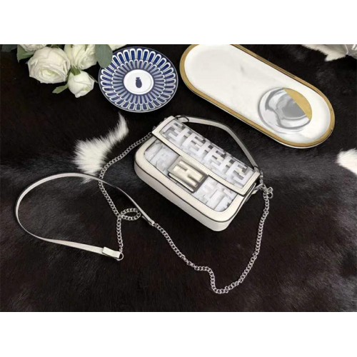 Fendi Kleine Baguette-Tasche aus PU, Weiß