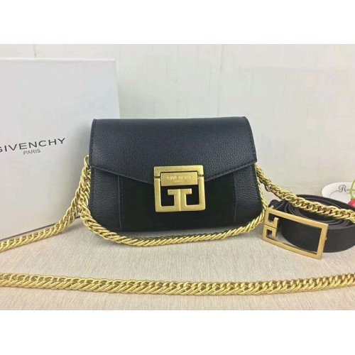 Givenchy kleine gv3 Tasche aus genarbtem Leder und Wildleder, Schwarz