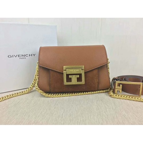 Givenchy kleine gv3 Tasche aus genarbtem Leder und Wildleder, braun