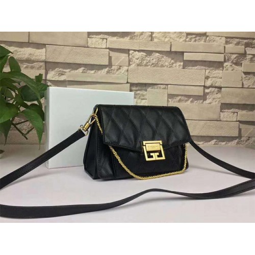 Givenchy gv3 Klappentasche aus gestepptem Kalbsleder, Schwarz