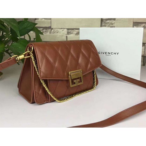 Diese schicke Tasche ist fein aus weichem, gestepptem Kalbsleder gefertigt. Die Tasche verfügt über einen Kettengliedgriff aus gealtertem Messing, einen optionalen Schultergurt aus Leder und eine Außentasche mit Reißverschluss. Die Klappe öffnet sich zu einem abgetrennten Mikrofaserinnenraum mit mehreren offenen Fächern. Dies ist eine ausgezeichnete Umhängetasche von Givenchy, ideal für wichtige Dinge des täglichen Bedarfs!