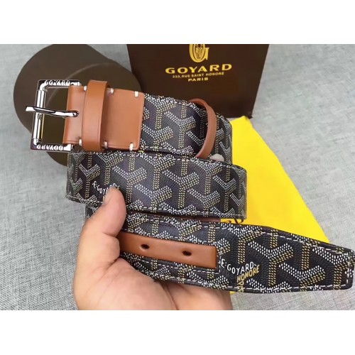 Goyard Chevron Goyardine Ledergürtel, schwarz mit braunem Lederbesatz