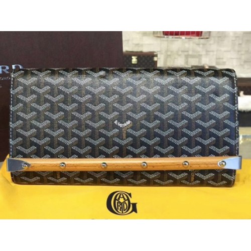 Goyard Chevron Monte Carlo Bois Clutch, schwarz mit braunem Lederbesatz
