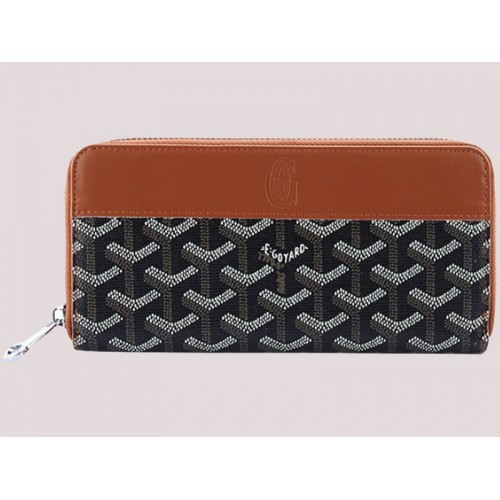 Goyard Goyardine Matignon Geldbörse Schwarz mit braunem Lederbesatz