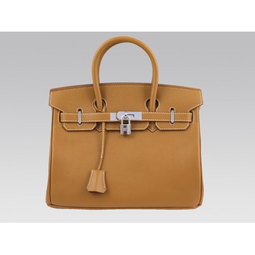 Hermès Birkin 30 cm, Togo-Leder, hellbraun, mit silberfarbenen Beschlägen
