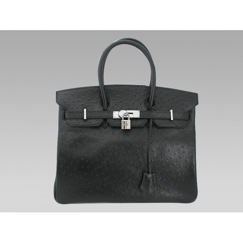 Hermès Birkin 35 cm Straußenleder Schwarz