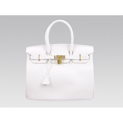 Hermès Birkin 35 cm, Togo Clemence Weiß mit goldener Hardware