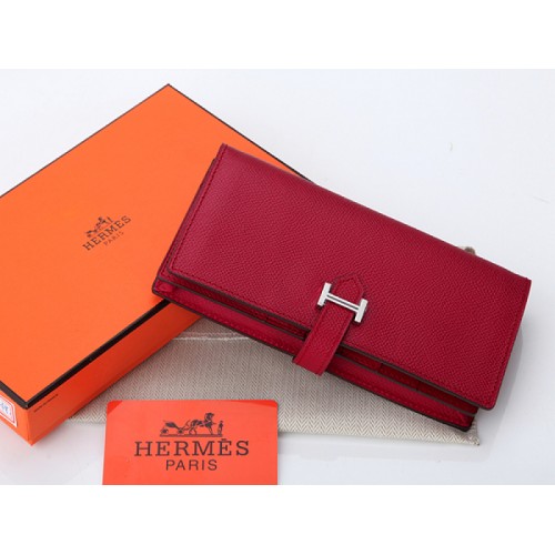 Hermès Epsom Original Kalbsleder Bearn Japonaise Zweifach-Geldbörse Burgunderrot