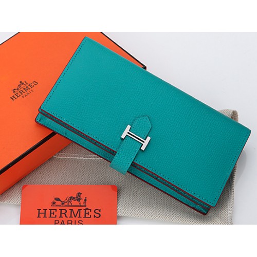 Hermès Epsom Original Kalbsleder Bearn Japonaise Zweifach-Geldbörse Türkis