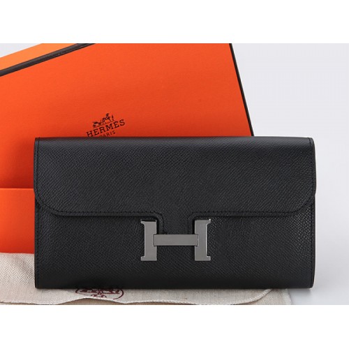 Hermès Epsom Original Kalbsleder Constance Lange Geldbörse Schwarz