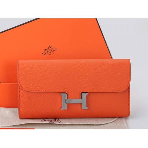 Hermès Epsom Original Kalbsleder Constance Lange Geldbörse Orange