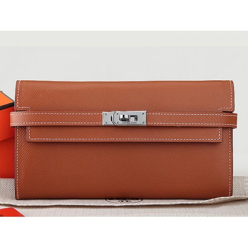 Hermes Kelly Long Geldbörse aus originalem Epsom-Kalbsleder, Kamel
