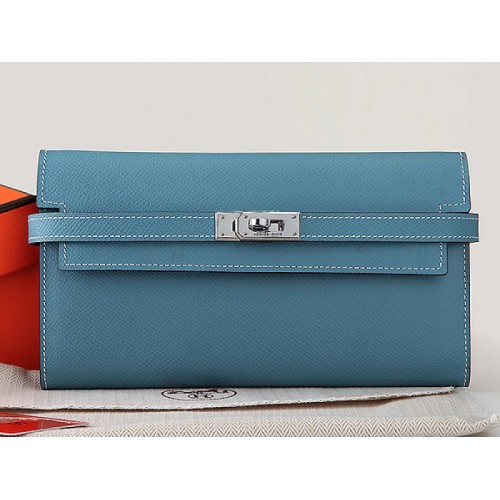 Hermès Kelly Long Portemonnaie aus originalem Epsom-Kalbsleder, hellblau
