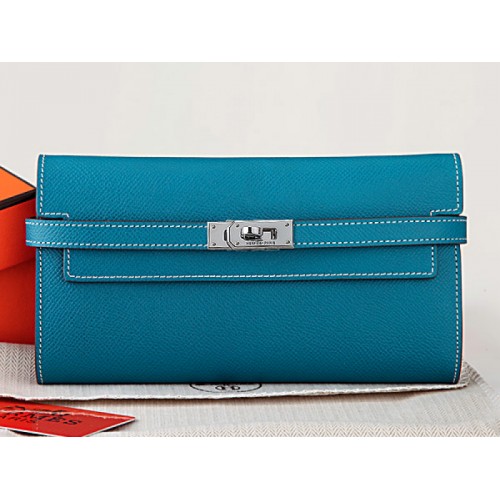 Hermès Kelly Long Portemonnaie aus originalem Epsom-Kalbsleder, mittelblau