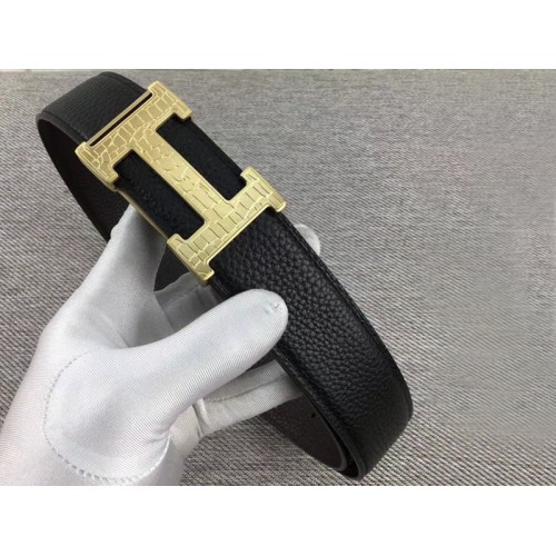 Hermes Gold H Gürtelschnalle & Wendelederriemen Schwarz