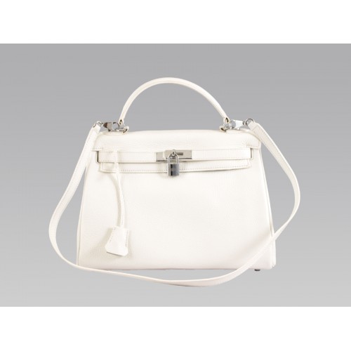 Hermès Kelly 32 cm Togo-Leder Clemence Weiß