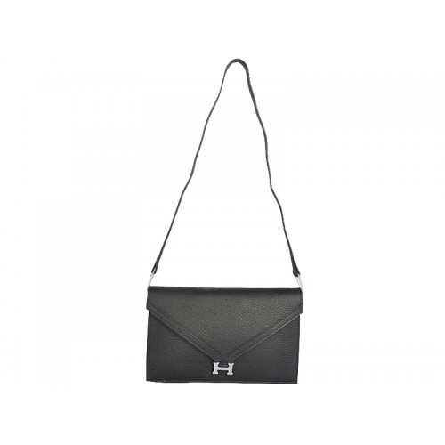 Hermes Pilot Envelope Clutch, Schwarz mit silberfarbenen Beschlägen