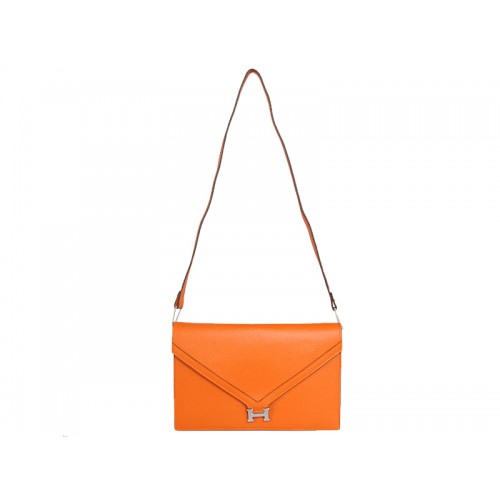 Hermes Pilot Envelope Clutch, orange mit silberfarbenen Beschlägen