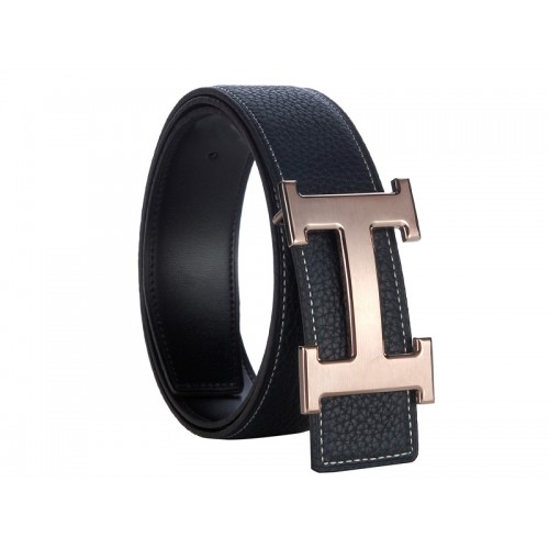 Hermès Togo Ledergürtel mit Everose-H-Schnalle, Schwarz