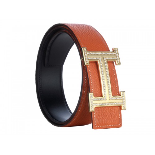 Hermes Togo Ledergürtel mit goldener H-Schnalle und Diamantbesatz, orange