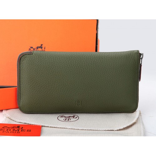 Hermès Reißverschlussgeldbörse aus Originalleder, olivgrün