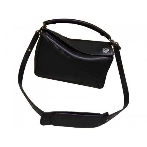 Diese große Loewe Puzzle-Tasche in Schwarz wird mit Serien- und Modellnummern, Pflegeheft, Karten und Staubbeutel geliefert