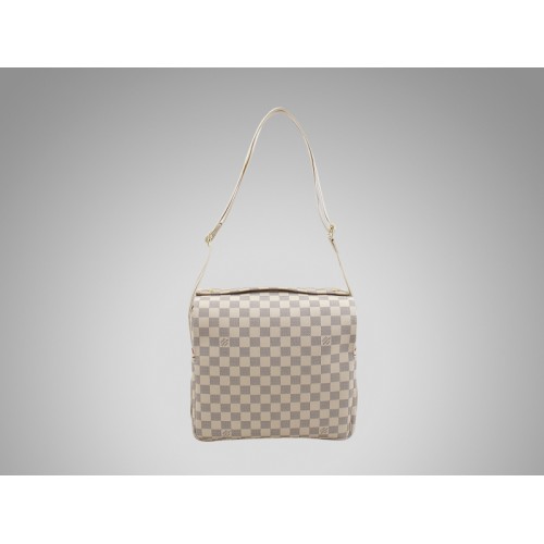 - Damier Azur beschichtete Leinwand mit natürlichem Rindslederbesatz