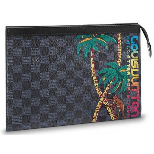 Inspiriert von der Herrenmodenschau Frühjahr/Sommer 2018 zeigt das Dschungelthema einen verspielten Palmendruck und die Regenbogen-Signatur von Louis Vuitton im Surfbrettstil auf Damier Cobalt-Leinwand. Kompakt und vielseitig, mit viel Platz für das Nötigste, kann die Pochette Voyage als Reisetasche in eine Tasche gesteckt oder für einen trendigeren Look von Hand getragen werden.