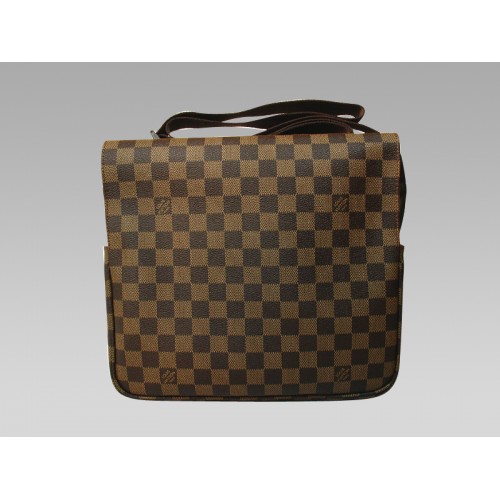 Louis Vuitton kombiniert die urbane Vielseitigkeit einer Messenger Bag mit der raffinierten Anziehungskraft der Damier-Leinwand. Das große Reißverschlussfach wird von zwei kleineren Außentaschen eingerahmt, deren verlängerte Klappen oben über den Reißverschluss schnappen, wodurch eine klare Silhouette und zusätzliche Sicherheit entstehen.