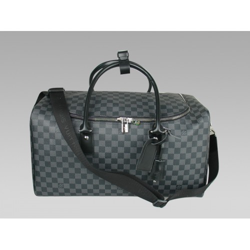 Ob ein Ausflug ins Fitnessstudio oder eine Übernachtungstour, die Damier Graphite Canvas Roadster-Replik ist ideal für den anspruchsvollen Mann. Diese Tasche ist mit einem breiten Reißverschluss-Klappenoberteil zur einfachen Aufbewahrung und einem verstellbaren abnehmbaren Riemen zum bequemen Tragen ausgestattet Glatte Ledergriffe und -verkleidungen ergänzen das raffinierte Damier Graphite Canvas gut und passen gut zu den Silbertonbeschlägen. Die LV Roadster-Replik ist ein schönes Stück für den Anfang Ihrer Damier Graphite-Kollektion.
