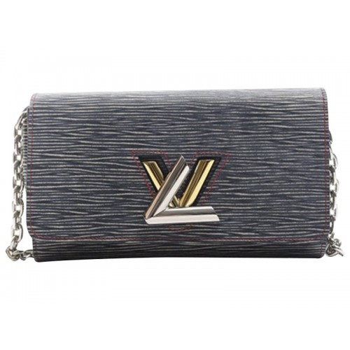 Louis Vuitton Epi Leder-Geldbörse mit Twist-Kette, Denim Schwarz