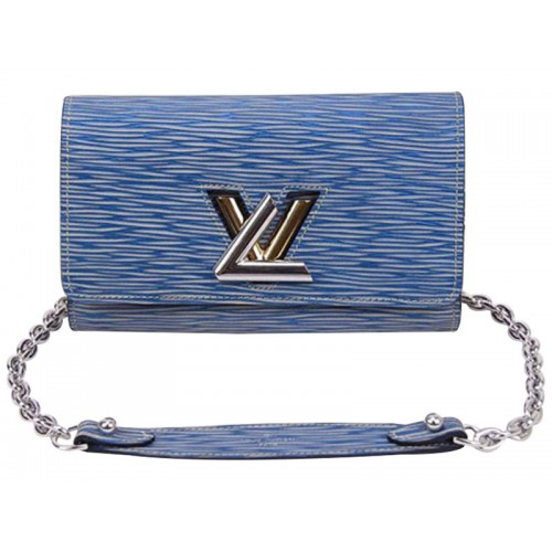 • Louis Vuitton Epi Leder Twist Chain Geldbörse Denim Light