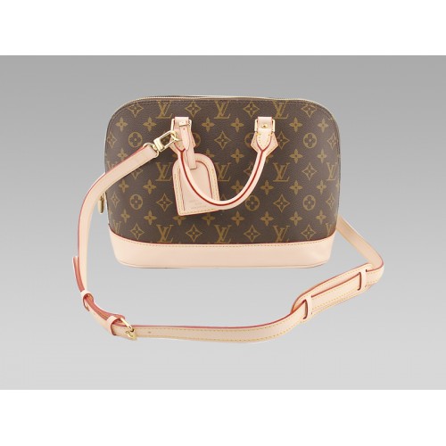Die Form der Alma-Replika-Handtasche ist von einer Form inspiriert, die Gaston Vuitton in den 1930er Jahren kreierte, was sie zu einem zeitlosen Design macht. Dieses berühmte Design von Louis Vuitton hat den Reiz des urbanen Chic-Stils, ist aber dennoch ein Bild klassischer Eleganz. Die Alma-Replik ist ebenso funktional wie schön Es verfügt über ein geräumiges Hauptfach mit Reißverschluss und kann von Hand getragen oder am Unterarm getragen werden. Außerdem wird es mit einem abnehmbaren Riemen zum Tragen über der Schulter geliefert. Die Innenseite dieses frechen Accessoires ist mit Alacantra-Innenfutter ausgekleidet. Der oxidierende Lederbesatz und die polierten Messingbeschläge tragen zu den subtilen, stilvollen Details dieser attraktiven Handtasche bei.