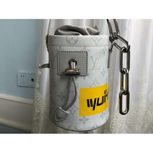 Die Chalk Nano-Tasche zeigt das charakteristische Louis Vuitton Monogram-Muster neben modernen praktischen Details. Mit seiner geschmeidigen Form, die von den Kreidetaschen der Kletterer inspiriert ist, kann dieser Artikel bequem auf der Schulter oder am Körper getragen werden. Es ist mit einer glatten Kette und einem funktionalen Karabinerverschluss am Riemen verziert, die Signaturen der Frühjahr-Sommer-Designs 2019 von Virgil Abloh sind.