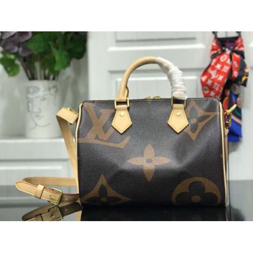 Die stets stylische Speedy-Handtasche zeigt ein neues Gesicht für Pre-Fall 2019. Dieses Modell verfügt über das übergroße Monogram Giant-Motiv gepaart mit Monogram Reverse, zwei frischen Iterationen des ikonischen Musters, die ihm einen modernen Reiz verleihen. Mit zwei Toron-Griffen und einem langen Riemen ist es eine vielseitige Tasche, die man jeden Tag tragen kann.