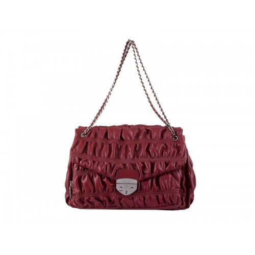 Prada Schultertasche aus geprägtem Nappaleder, Weinrot