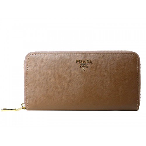 Prada Saffiano Zippy Geldbörse Hellbraun
