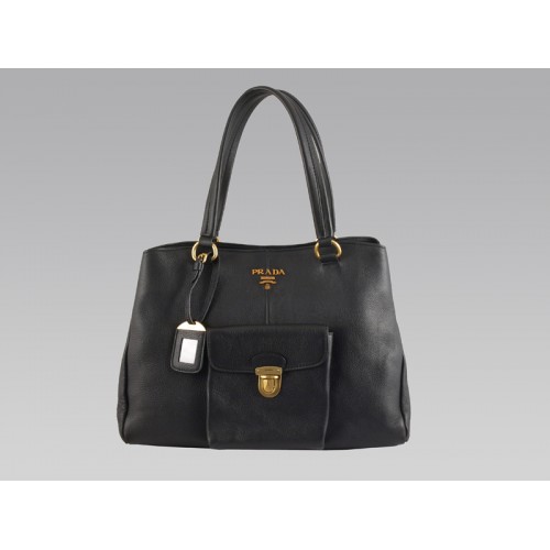 Prada Kuhleder-Tragetasche, mittelgroß, mit Vordertasche, Schwarz