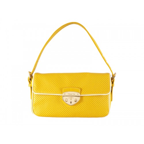 Prada Schultertasche aus perforiertem Rindsleder, Gelb
