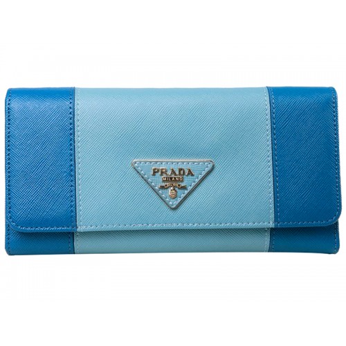 Prada Saffiano Leder Dreifach-Geldbörse Blau mit Hellblau