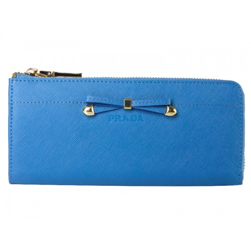 Prada Saffiano Geldbörse mit Reißverschluss und Schleifendetail, Blau