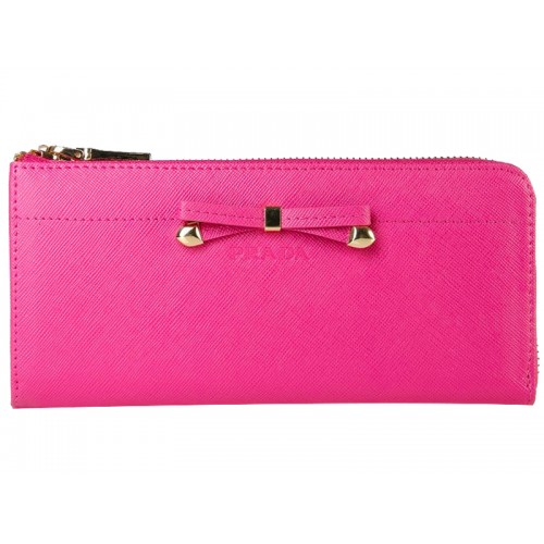Prada Saffiano Geldbörse mit Reißverschluss und Schleifendetail, Pink
