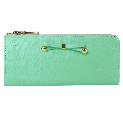 Prada Saffiano Geldbörse mit Reißverschluss und Schleifendetail, hellgrün