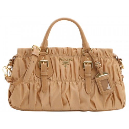 Prada Tessuto Gaufre Nylon-Tasche mit Griff oben Beige