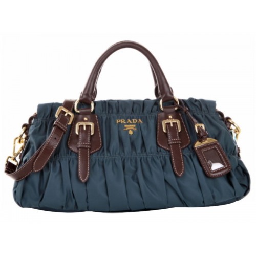 Prada Tessuto Gaufre Nylon Henkeltasche Blau